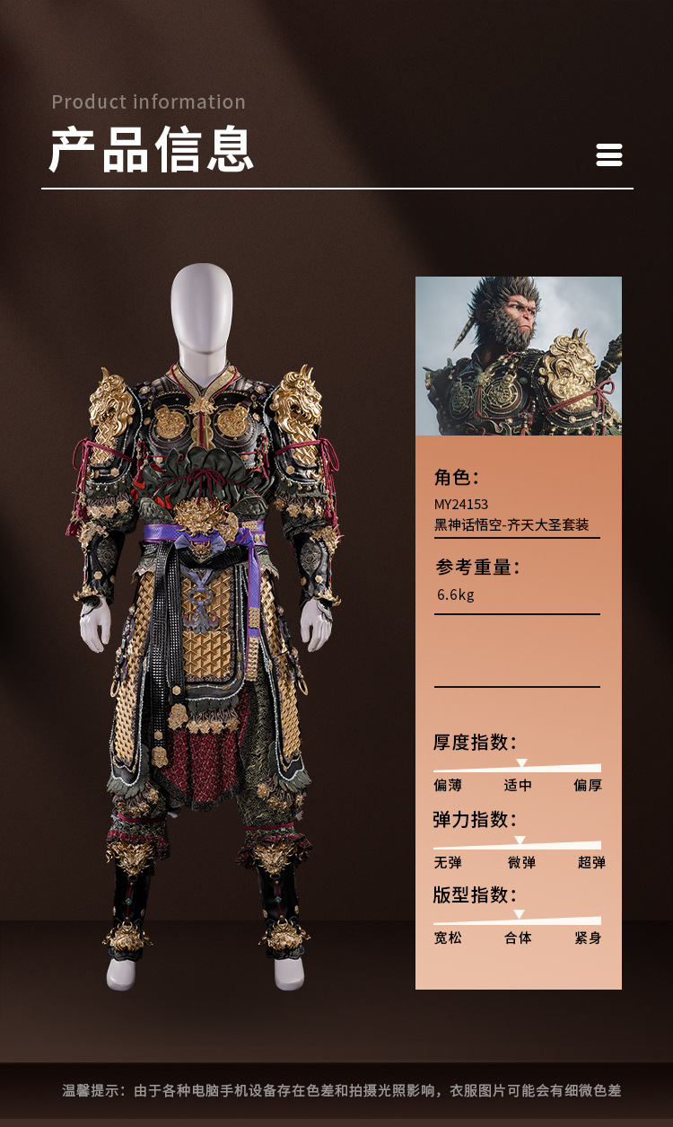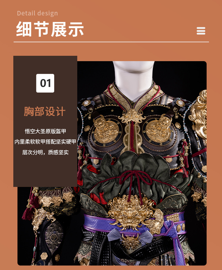 - Аутентичный дизайн: Вдохновленный игрой Черная Легенда: Вуконг, этот костюм точно воспроизводит образ Цитиань Дашена.